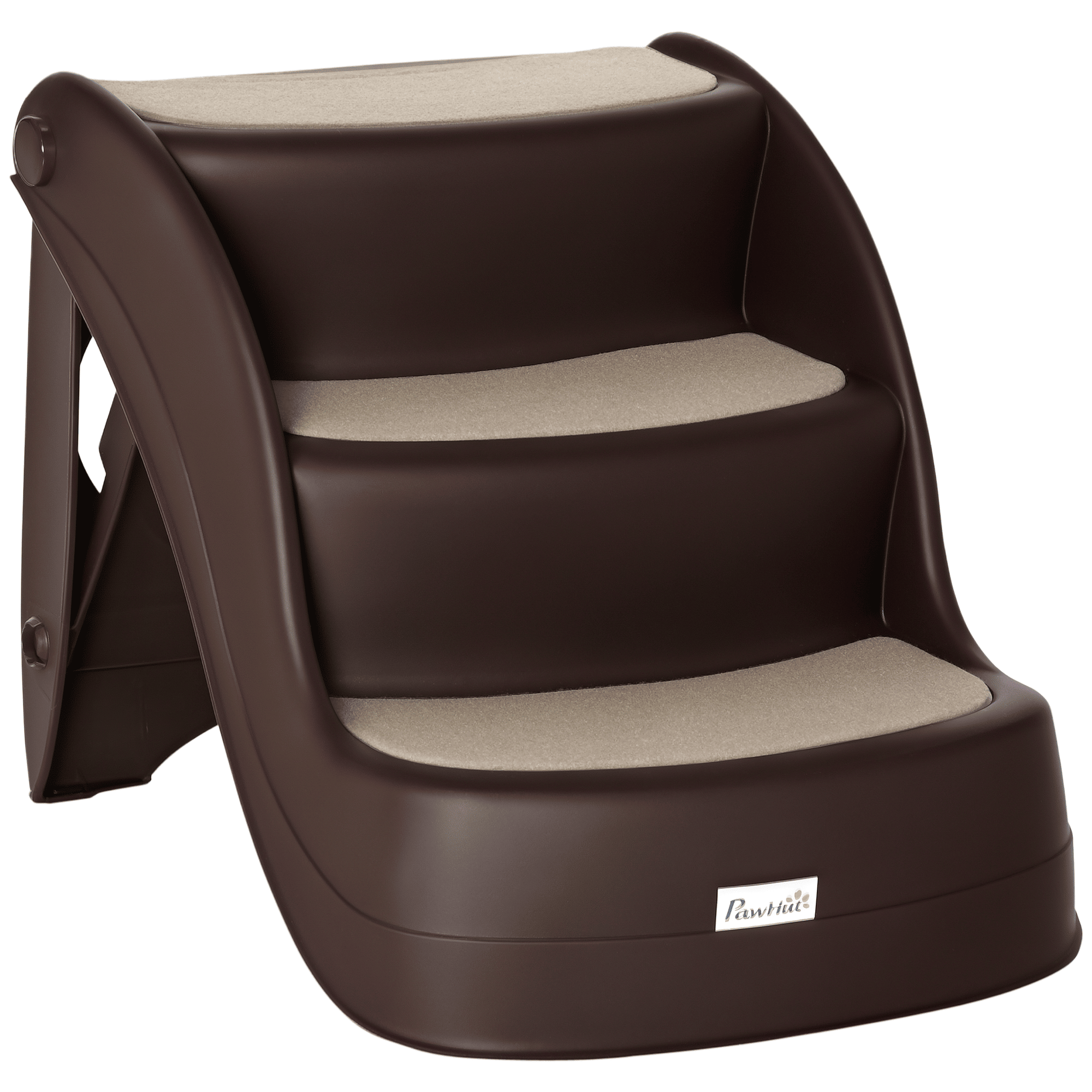 Home > Portable Pet Stairs Foldable Steps for Small Dogs and Cats 3-Step with Non-slip Treads for Beds Sofas, Brown