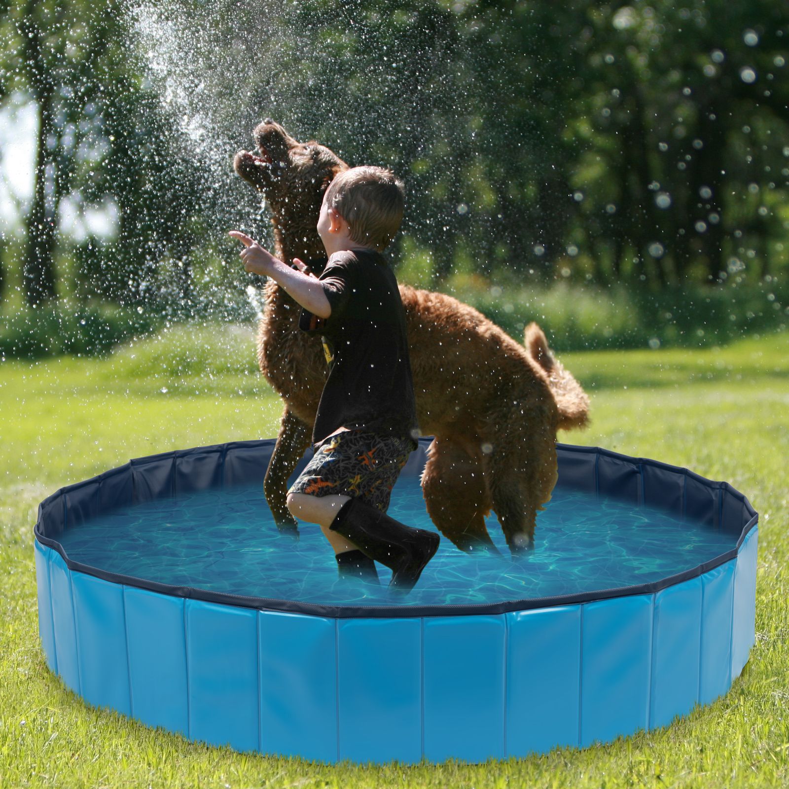 Our 63" Large Collapsible Wading Pool will be an amazing aqua wonderland for the whole family! Featuring 63 in diameter and 12 in deep; it is large enough to let kids or pets having fun together. The pool can also be used as a fish pond; a pits ball pool; whelping box and more; perfect for indoor and outdoor garden; beach; and backyard. Foldable design avoids the hassle of inflation and deflation. It can be set up in seconds without any tools. And of course; you can easily store it in any corner or even bring the pool with you and your dog during a trip.